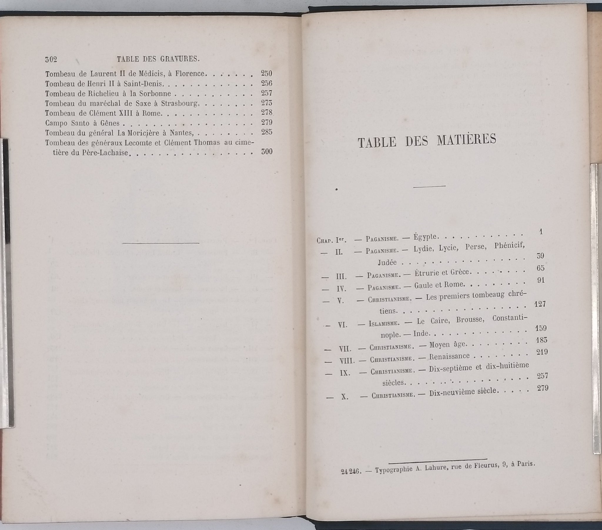 Contient : Paganisme (Egypte, Lydie, Lycie, Perse, Phénicie, Judée, Etrurie et Grèce, Gaule et Rome) ; Christianisme - les premiers tombeaux chrétiens ; Islamisme (Le Caire, Brousse, Constantinople, Inde) ; Christianisme - Moyen Age ; Christianisme - Renaissance ; Christianisme - XVIIe et XVIIIe siècles ; Christianisme - XIXe siècle.