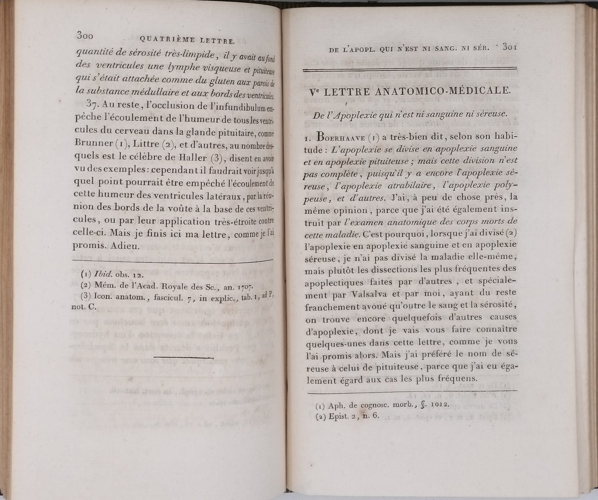 Volume IV : 1821. 2 feuillets non chiffrés (Faux titre et Titre), 549 pp., 2 pp. non chiffrées (Table et Errata). Contient : les Lettres Anatomico-médicales de XXII à XXVII.