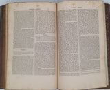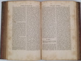 Grand in-8 (18 x 27,8 cm). Reliure de l'époque demi chagrin cerise. Plats en percaline orangée avec une pièce losange d'ex-libris rouge avec en or "Henri Fiéron, avocat" (voir ci-dessous) sur le premier plat. Dos lisse avec titre doré et des arabesques dorées à la façon romantique. Reliure avec des taches et des manques aux plats, en particulier deux grandes taches de mouillures anciennes en tête et pied du second plat. Coins émoussés. 1 ff. blanc avec l'ex-libris manuscrit de Henri Fiéron et des notes manuscrites de A. Delhorme acheteur du livre aux enchères à la succession Fiéron en 1840, 4 ff. (Indications de la collection, Faux titre, Titre, Poème de dédicace de Buchon à ses amis Salvador et Crémieux), XXVIII pages (Notice sur Flavius Joseph, Autobiographie de Flavius Joseph), 878 pp. Texte sur deux colonnes. Papier jauni avec des taches et rousseurs assez marquées. Bon exemplaire malgré les défauts signalés.
