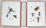 in-4 (20,5 x 28,5 cm pour le coffret). Coffret toilé de l'éditeur couleur rouille, avec titre doré sur le premier plat et la tranche, contenant une brochure explicative de 32 pages et 192 planches en couleurs illustrant des insectes. Chaque planche est sur un feuillet libre avec au recto le dessin en couleurs du ou des insectes de la même famille et au verso sa description entomologique. Petites usures au coffret. Bel exemplaire complet de ses 192 planches.