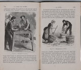 "La Chimie des champs", 186 pages et une page de table non chiffrée, 65 figures dans le texte. Table des matières : Préface. L'air. Les pierres. Les eaux. La vie. Comment un gland devient chêne. Les engrais. Histoire d'un fromage. La cuvée. Chimie de la cuisine. Sources chimiques du travail. Dans la Préface : "Nous nous proposons, dans ce petit livre, d'exposer les notions les plus élémentaires de la chimie dans ses rapports avec la vie des champs, les productions du sol, les récoltes du laboureur et les produits de son industrie. ... La science appliquée à l'étude de la nature ne peut que contribuer à relever les esprits, affermir les croyances et disposer aux devoirs de notre destination."