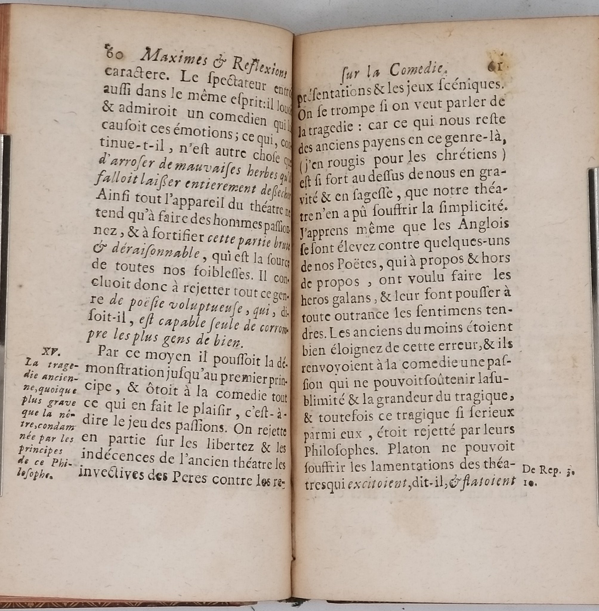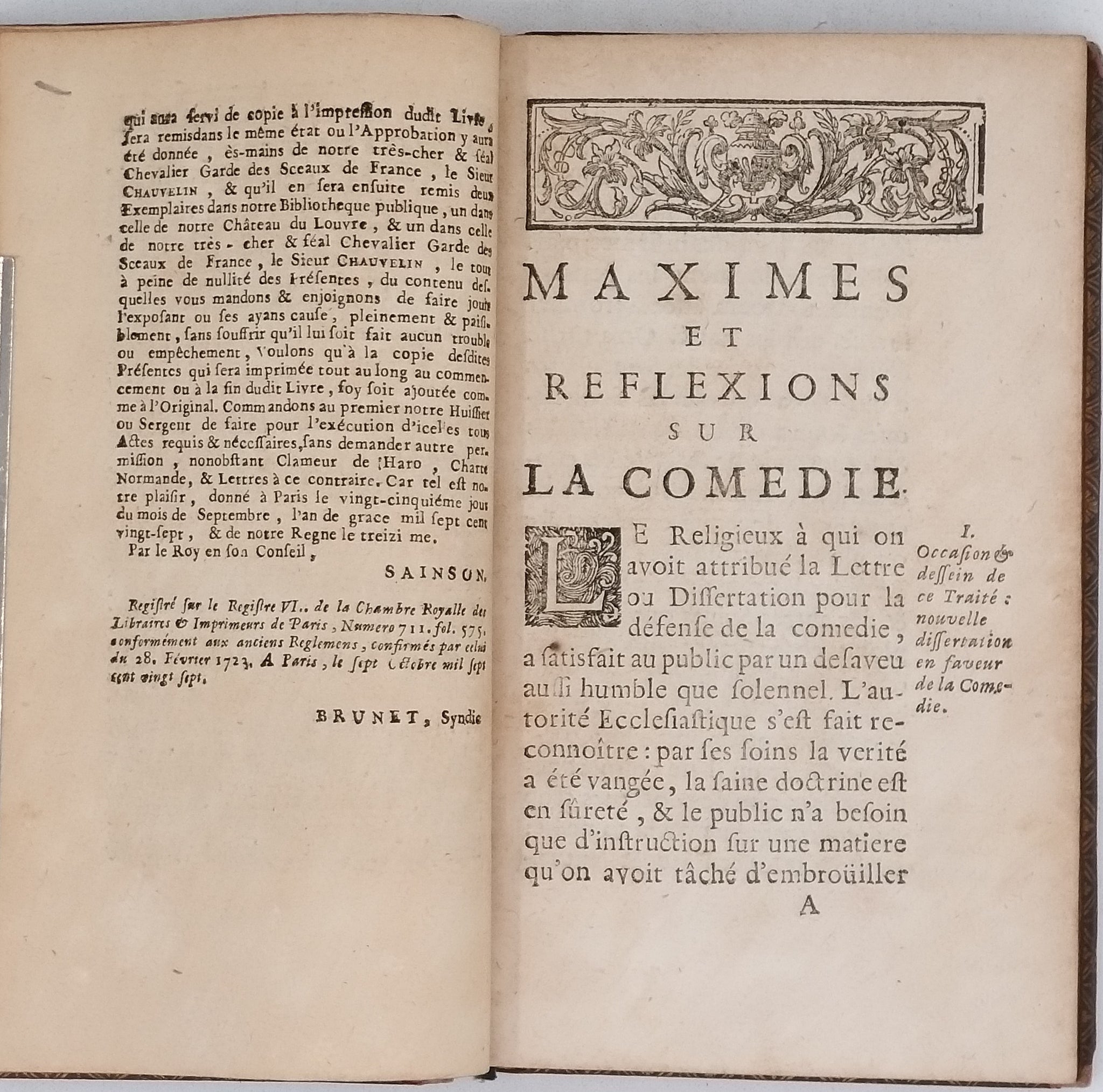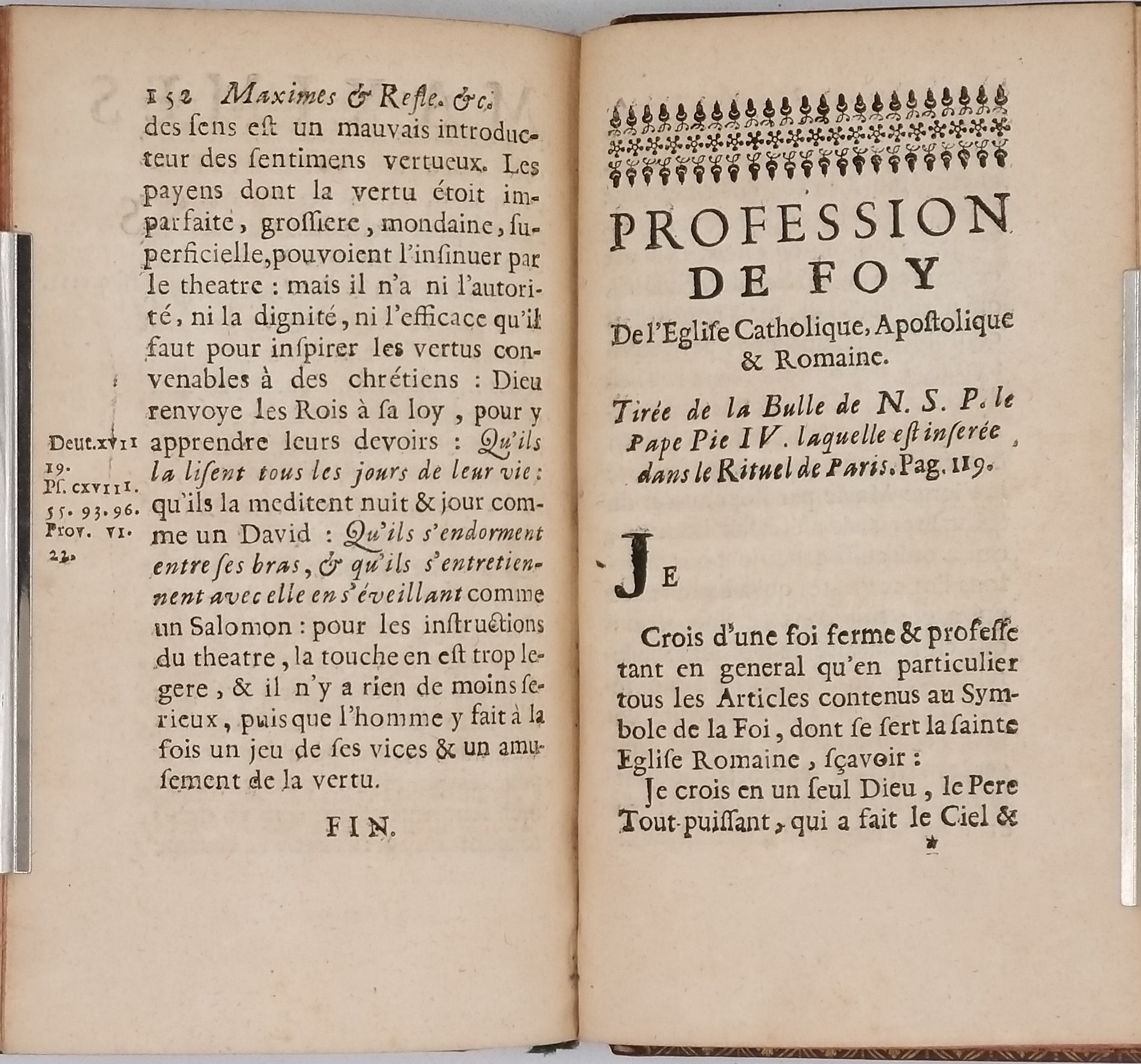 BOSSUET Jacques Benigne "Maximes et réflexions sur la comédie" à la suite "Profession de Foy De l'Eglise Catholique, Apostolique & Romaine"