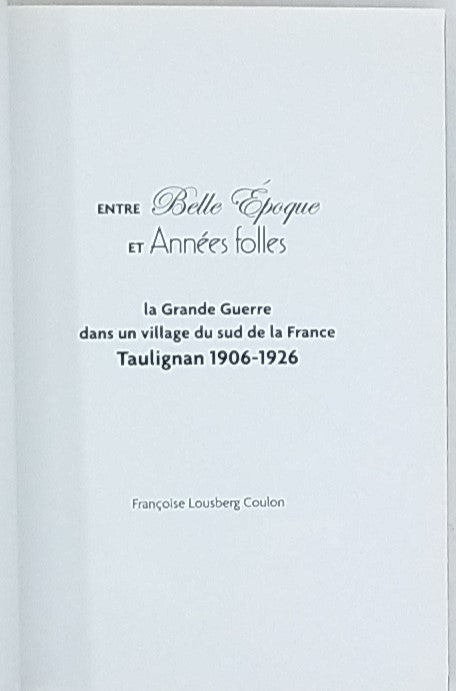 LOUSBERG COULON Françoise "Entre Belle Epoque et années folles, la Grande Guerre dans un village du sud de la France, Taulignan 1906-1926"