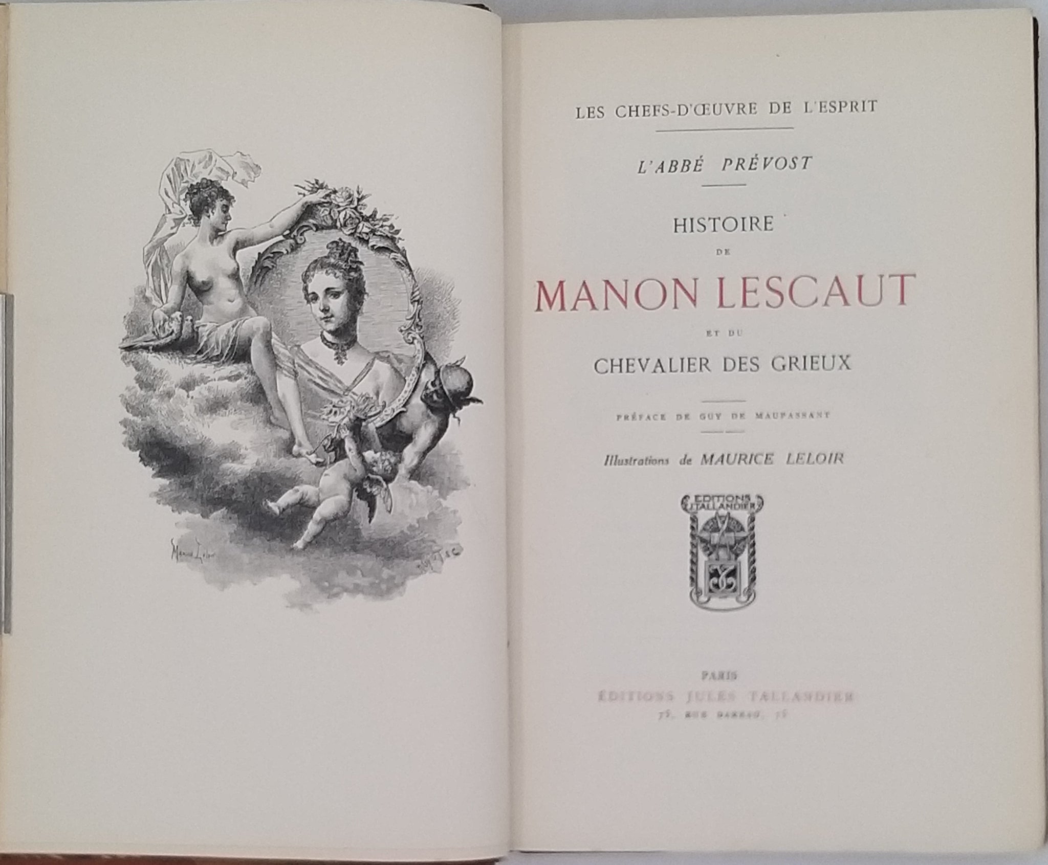 PRÉVOST Antoine François (dit l'abbé PRÉVOST) [Illustrations de LELOIR, Maurice] [Préface de MAUPASSANT, Guy de] "Histoire de Manon Lescaut et du Chevalier des Grieux"