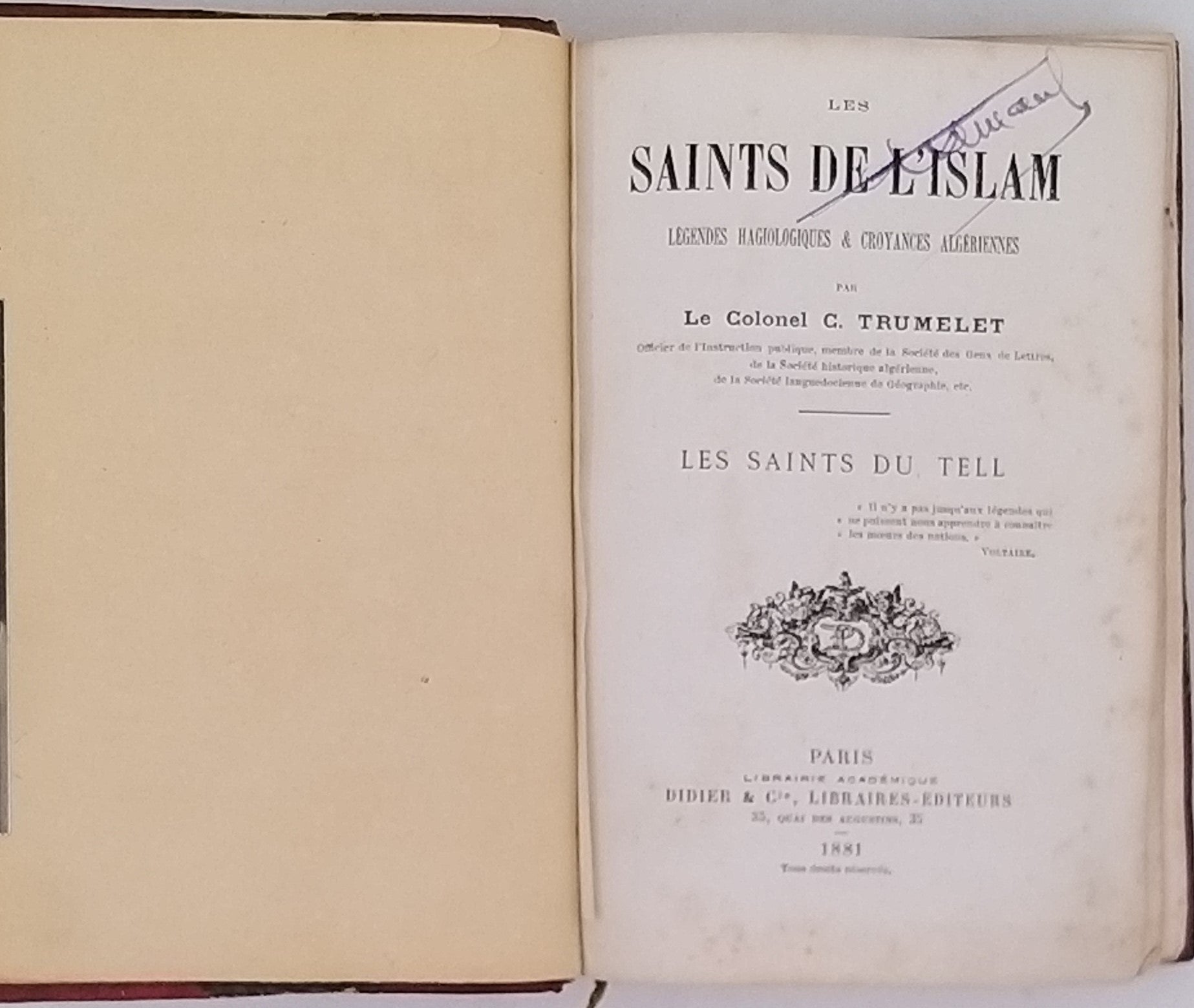 TRUMELET Corneille [Colonel] "Les Saints de l'Islam - Légendes hagiologiques & croyances algériennes - Les Saints du Tell"